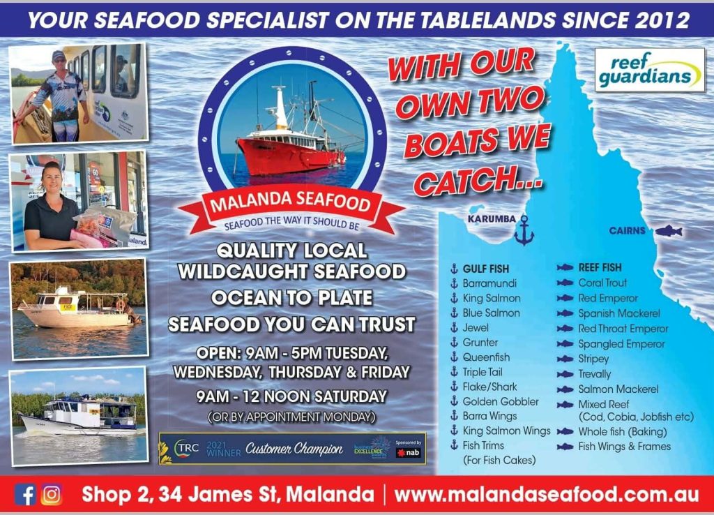 Gulf Estuary Fish – FV SeaWitch, KarumbaWild Saltwater BarramundiKing/Threadfin SalmonBlue SalmonJewelGrunterTriple TailGolden CobblerQueenfishPomfretBarramundi WingsKing Salmon WingsFish Trims (for Fish Cakes)Barra Heads (for Soup/Stock)Bulk Buys5kg & 10 kg BoxesGulf Wild Barramundi (our boat)Gulf Wild King Salmon (our boat)